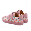 Model Piko sú topánky v štýle tenisiek vyrobené z kvalitnej ružovej semišovej kože s potlačou sladkých jahôd. Zamiluje si ich každé dieťatko. Majú zapínanie na dva praktické remienky na suchý zips, ktoré umožňujú prispôsobiť topánku chodidlu rôznej šírky, vystuženú pätu, ktorá nohu stabilizuje, a pružnú a protišmykovú podrážku, ktorá je ideálna na hranie. Vo vnútri je profilovaná vložka z juchtu, t.j. ekologickej hovädzej kože ošetrenej rastlinnými látkami, šetrnej k jemnej detskej pokožke.