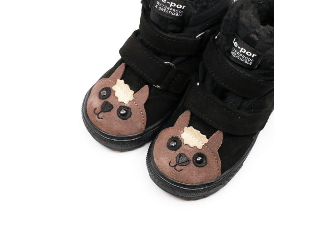 Kvalitné zimné topánky s TePor membránou a s typickou aplikáciou zvieratka na špičke. Alpaca na čiernej zahreje nôžku aj v tej naväčšej zime. Topánky majú príjemnú kožušinku zvnútra topánky, a prišitý jazyk zabezpečí, aby sa do topánočky nedostal žiaden sneh ani voda. Vďaka membráne dýchajú a zároveň nepremoknú.