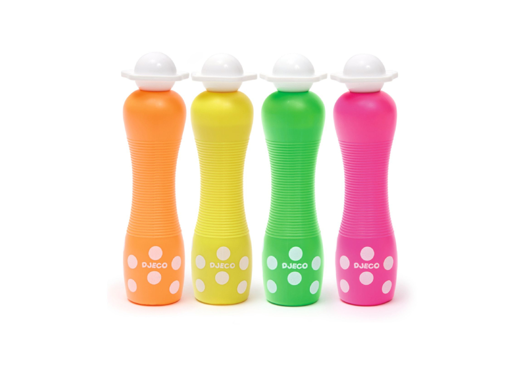 4 neónové farby v tube s penovým hrotom s fluorescenčným efektom (v oranžovej, žltej, zelenej a ružovej farbe).