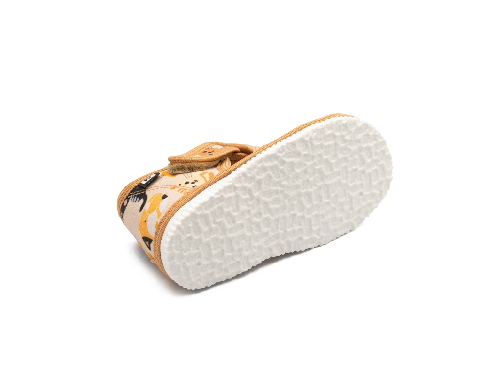 Pohodlné slovenské papučky v béžovej farbe, s motívom mačičiek, overené tisíckami spokojných nožičiek. Pohodlné zapínanie na suchý zips a otvorená špička zabezpečia komfortné obúvanie. Zároveň ľahko zistíte, či sú papučky dobré, alebo už treba prísť po nový pár :) Vyrobené s láskou na Slovensku.