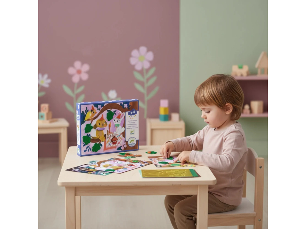 - Vyberá penové samolepky a lepí ich na určené miesta.