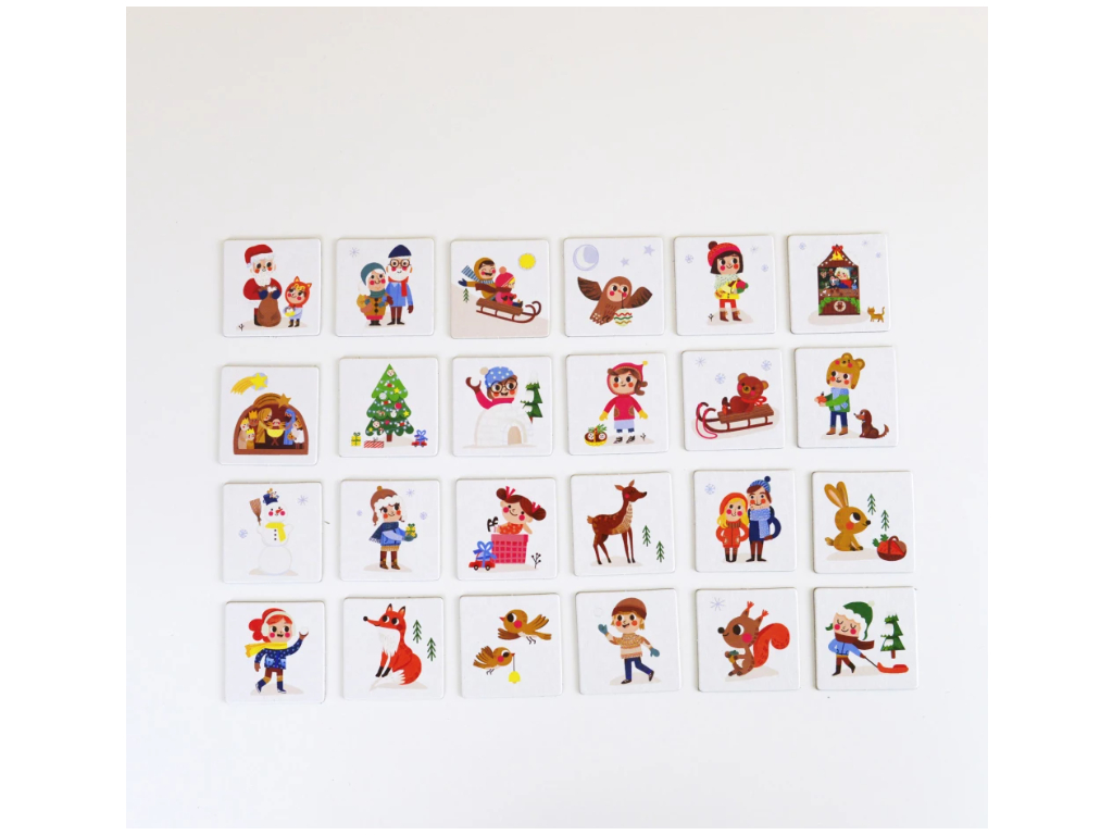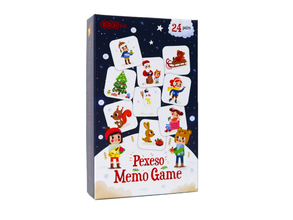 Originálne vianočné pexeso pre deti navodí u vás doma príjemnú vianočnú atmosféru. Balenie obsahuje 48 kartičiek, teda 24 párov pexesa, so zimnými a vianočnými motívmi z vianočného bestselleru Magnetická kniha Vianoce. Hravé ilustrácie vytvorila ilustrátorka Edita Hajdu. Kartičky majú rozmer 4,5 x 4,5 cm, vyrobené z pevného kartónu a majú oblé rohy. Sú tak dostatočne veľké a bezpečné pre malé detské ruky.
