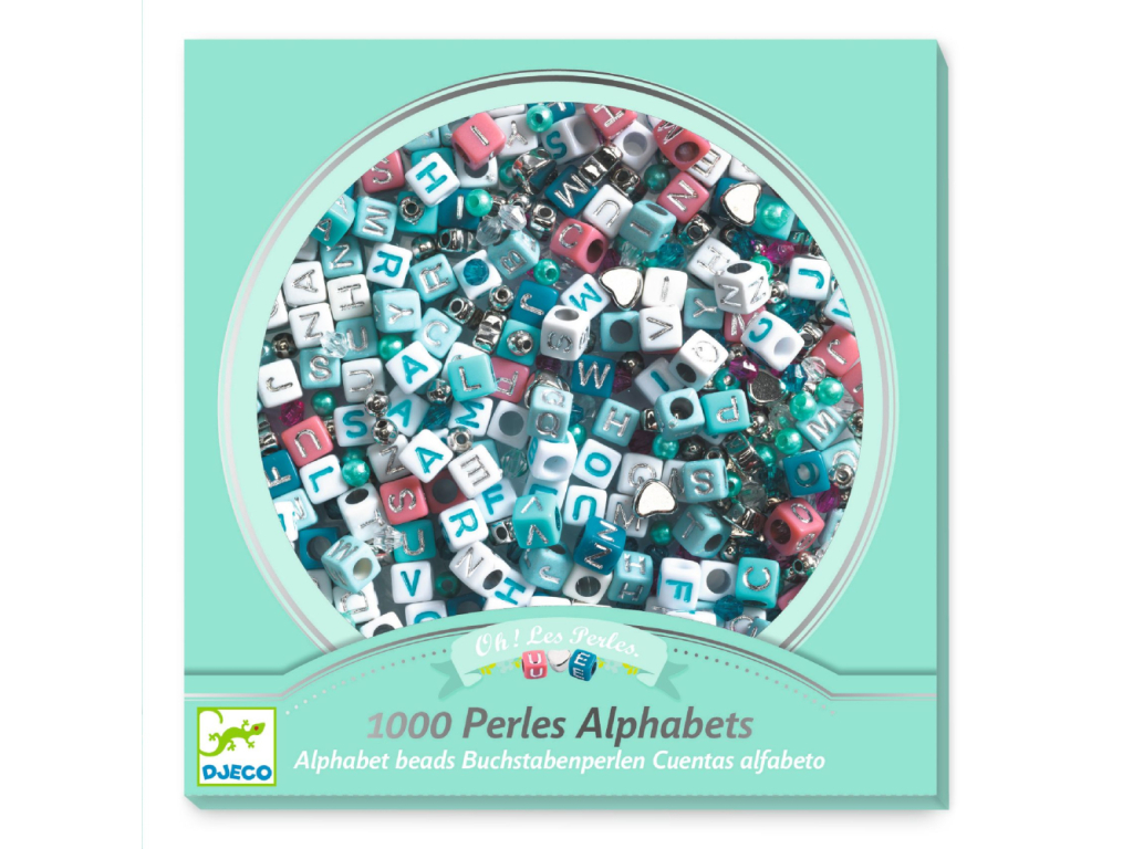 Sada korálok na bižutériu od Djeco. Obsahuje 1000 kusov korálok a elastickú šnúrku na zhotovenie mnohých náramkov. Z kockových písmenkových korálok sa dajú vyskladať mená alebo slovíčka. Doplnené menšími farebnými a striebornými korálkami písmenká pekne vyniknú. Obsahuje 2 ihly na navliekanie.