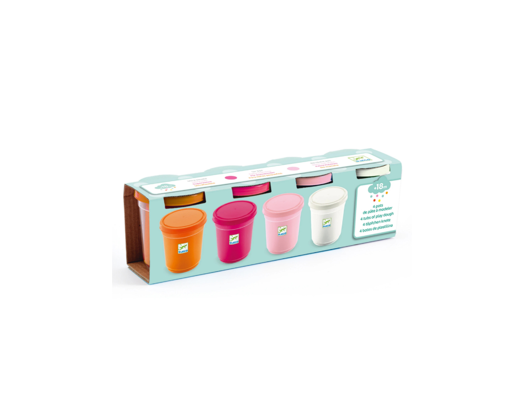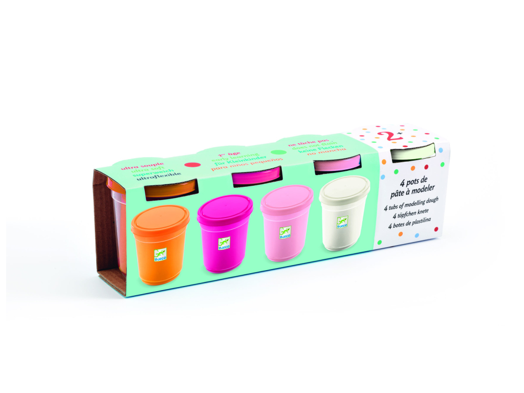Mäkká a príjemná plastelína určená pre najmenšie deti. V sade nájdeš štyri tégliky s krásnymi pastelovými farbami – napríklad bledoružová, svetlá oranžová či fialová. Plastelína je veľmi ľahko tvarovateľná, takže sa s ňou deti hrajú bez námahy.