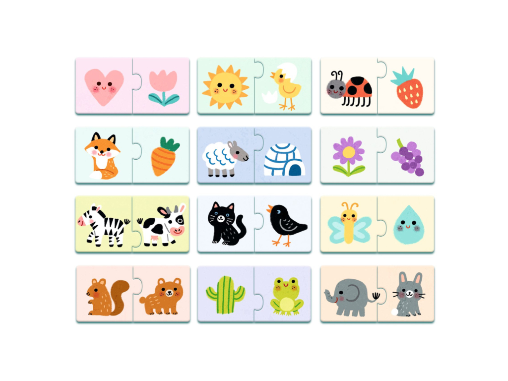 Puzzle duo Farby je vzdelávacie puzzle, ktoré deťom pomôže začať sa učiť farby. Dieťa spája predmety a zvieratá rovnakej farby.
