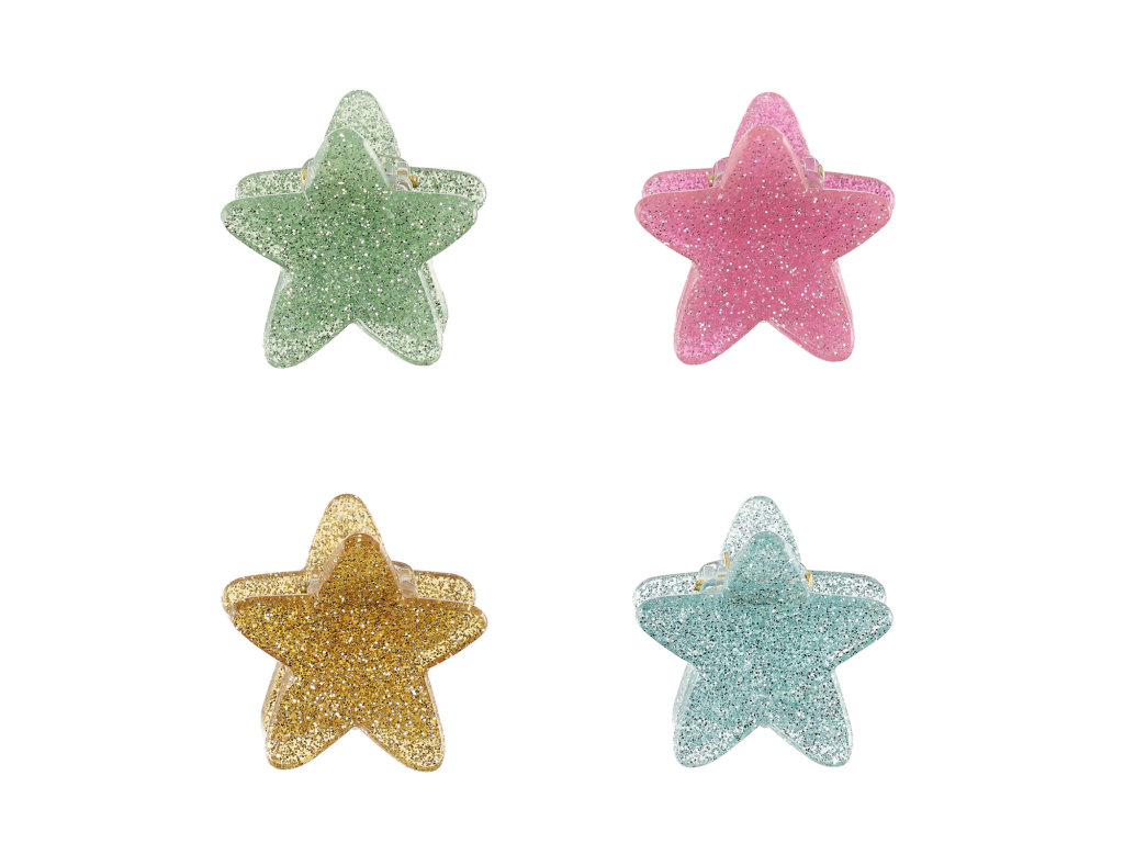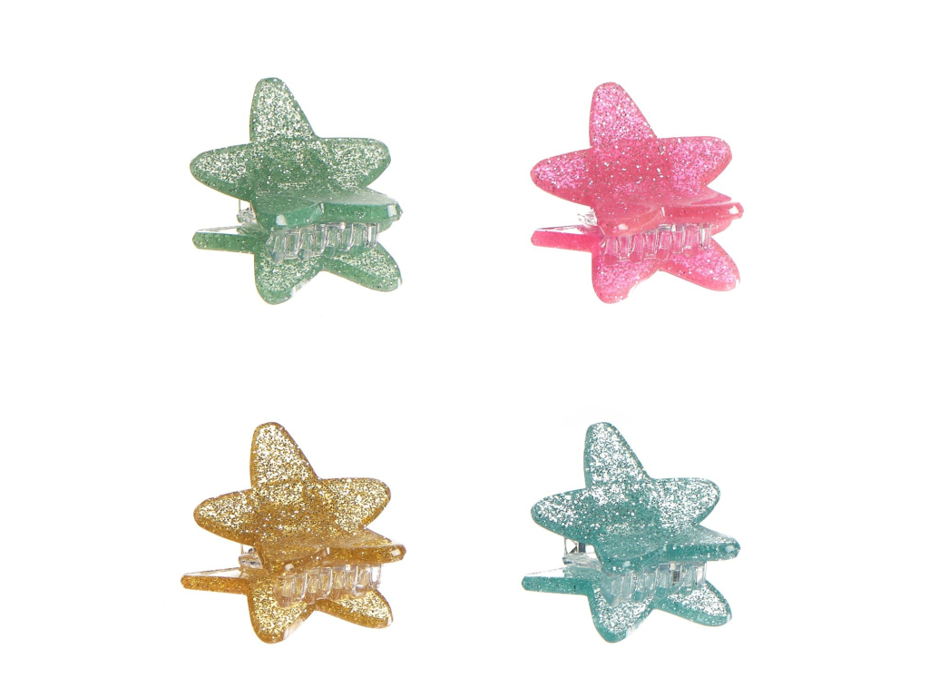 Táto sada štyroch mini sponiek do vlasov, navrhnutá pre najmenších, je zábavným doplnkom každého účesu! Vyrobená z trblietavého a farebného acetátu s malými úchopnými zúbkami, ktoré držia vlasy na mieste – noste ich po jednej alebo všetky naraz!