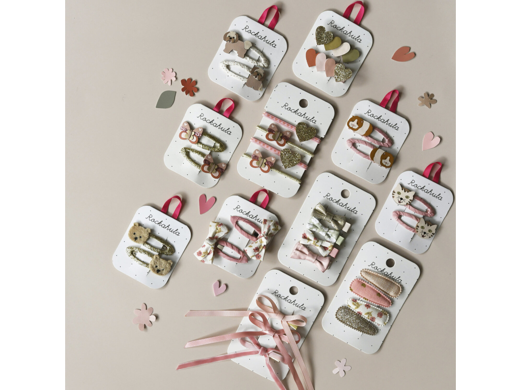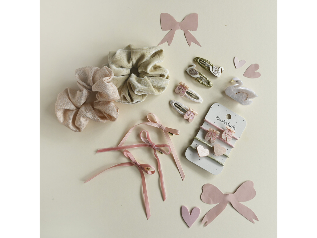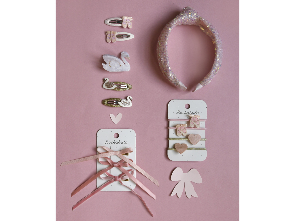 Skombinujte túto rozkošnú sadu troch sponiek pre ten najroztomilejší vzhľad! Tri malé ručne viazané mašličky v palete jemných ružových odtieňov a upevnené na zlatých krokodílích sponách! Noste ich jednu po druhej alebo všetky naraz!