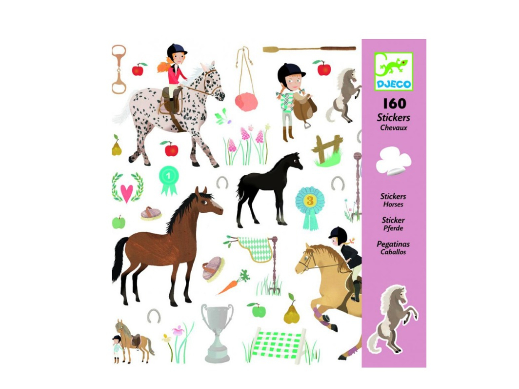 160 samolepiek pre všetkých milovníkov koní :) Nálepky sú u detí veľmi obľúbené - jednoducho sa aplikujú a majú mnohoraké využitie. Deti si nimi možu doplniť svoje kresby, alebo nimi ozdobiť rozličné predmety.