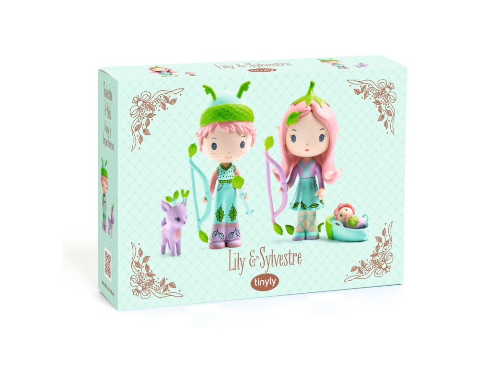 Figúrky z kolekcie tinyly od Virginie Brachet. K priateľským elfom Lily a Sylvestrovi neodmysliteľne patrí bábätko Babily. Trojicu sprevádza srnček Polo. Najradšej sa spolu túlajú tajomným lesom. S lukmi a šípom a verným spoločníkom srnčekom sa nemusia báť. Babily má vo svojom košíku bezpečné miesto na odpočinok. Figúrky s doplnkami na hranie, vytváranie imaginárnych svetov a do zbierky.