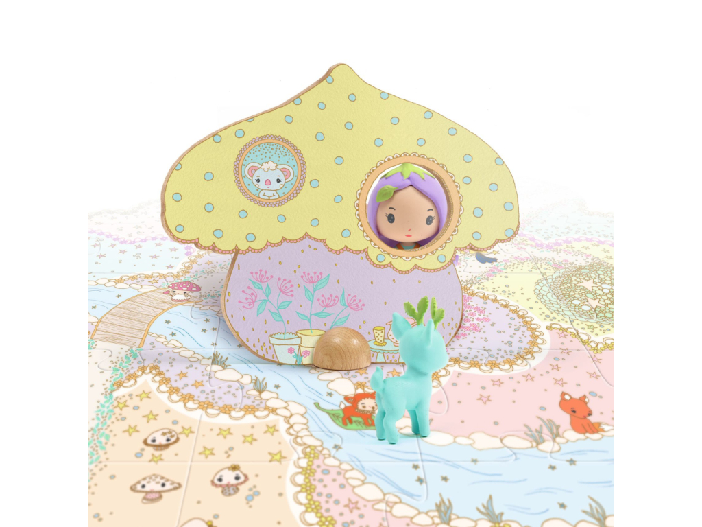 Očarujúci a rozkošný svet zložený z 24 podlahových dielikov a 9 vertikálnych dielikov, vrátane kvetinového oblúka, dvoch roztomilých hubových domčekov a očarujúceho kríka. V tejto scéne s jemnými farbami a krásnymi detailmi sa elfka Lily a jej verný spoločník jeleň Polo vydávajú na mimoriadne dobrodružstvá. Jemné zurčanie magickej rieky dodáva ich rozmarným dobrodružstvám nádych pokoja a mágie. Jemne sfarbené stvorenia s jemnými črtami z magického sveta Tinyly.