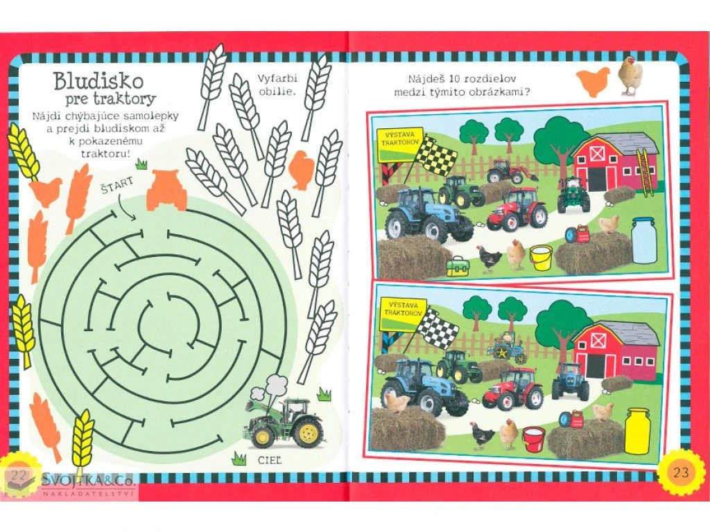 🚜 Vyrazte na dobrodružnú cestu plnú traktorov, nákladiakov a samolepkovej zábavy! Táto knižka je ideálna pre všetkých malých milovníkov veľkých strojov – čaká na vás viac ako 1 000 samolepiek, ktoré môžete nalepiť priamo do knižky alebo kdekoľvek inde, a množstvo hravých úloh plných farieb a pohybu. Vyfarbujte traktory, doplňujte obrázky podľa zadania, hľadajte skryté predmety a objavujte, ktorý traktor sa dostane do cieľa ako prvý. Vďaka kombinácii samolepiek, vyfarbovania a zaujímavých úloh táto knižka baví dlhé hodiny aj celé skupiny detí.