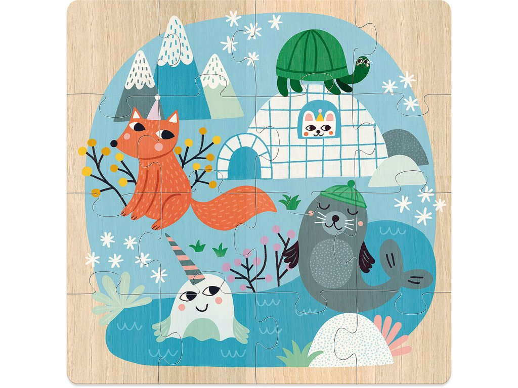Sada 3 obrázkových puzzle v praktickej krabičke. Ilustrácie Michelle Carlslund predstavujú tri scény so zvieratami z celého sveta v rôznych biotopoch. Nájdite peknú žirafu a jej priateľov hrocha, pštrosa a vtáka v savane. Šikovný králik, malé kačice, ktoré sa majú na pozore pred na medveďom a ich pískajúce priatelia nájdete v lese. Nakoniec nájdite polárne líšku a jej priateľov medveďa, korytnačku a tulene na ľadové kryhe. Puzzle podporí učenie obratnosti a pozorovanie.