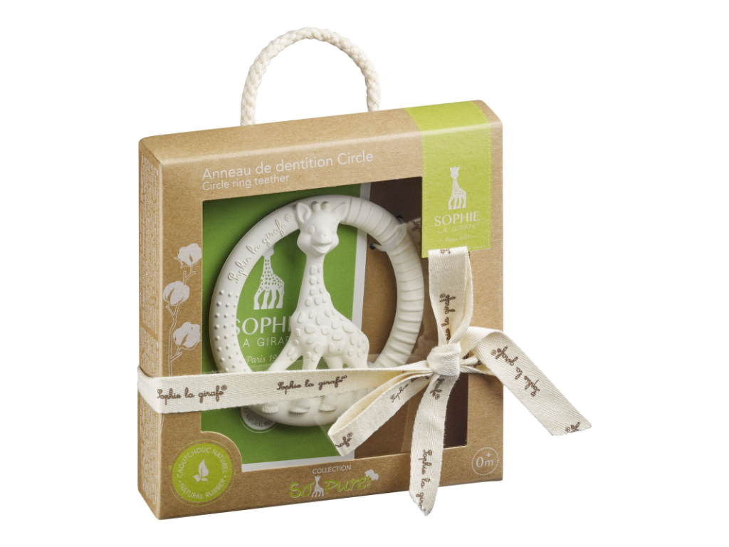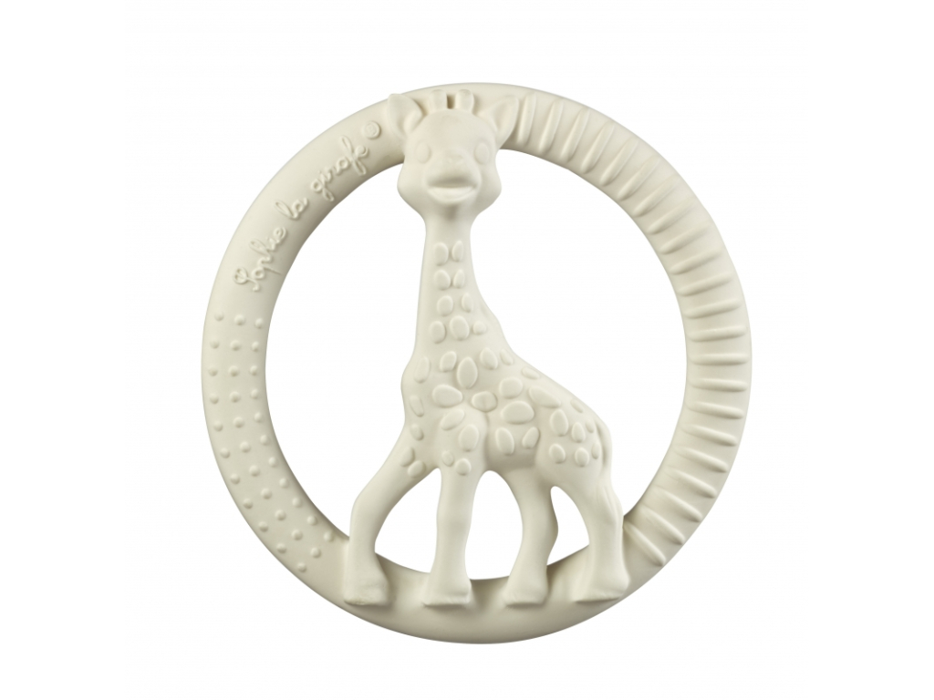 Okrúhle hryzátko sa žirafou Sophiou z kolekcie So Pure. Krúžok na hryzenie je vyrobený zo 100% prírodného kaučuku. Tento mäkký krúžok na hryzenie je hladký a bezpečný pre dieťa. Je ľahký a ergonomický, vďaka čomu ho ľahko uchopia malé detské ručičky. Malé bodky a pruhy na vonkajších častiach hryzátka účinne masírujú boľavé ďasná dieťatka a zároveň zmierňujú jeho bolesť pri prerezávaní zúbkov.