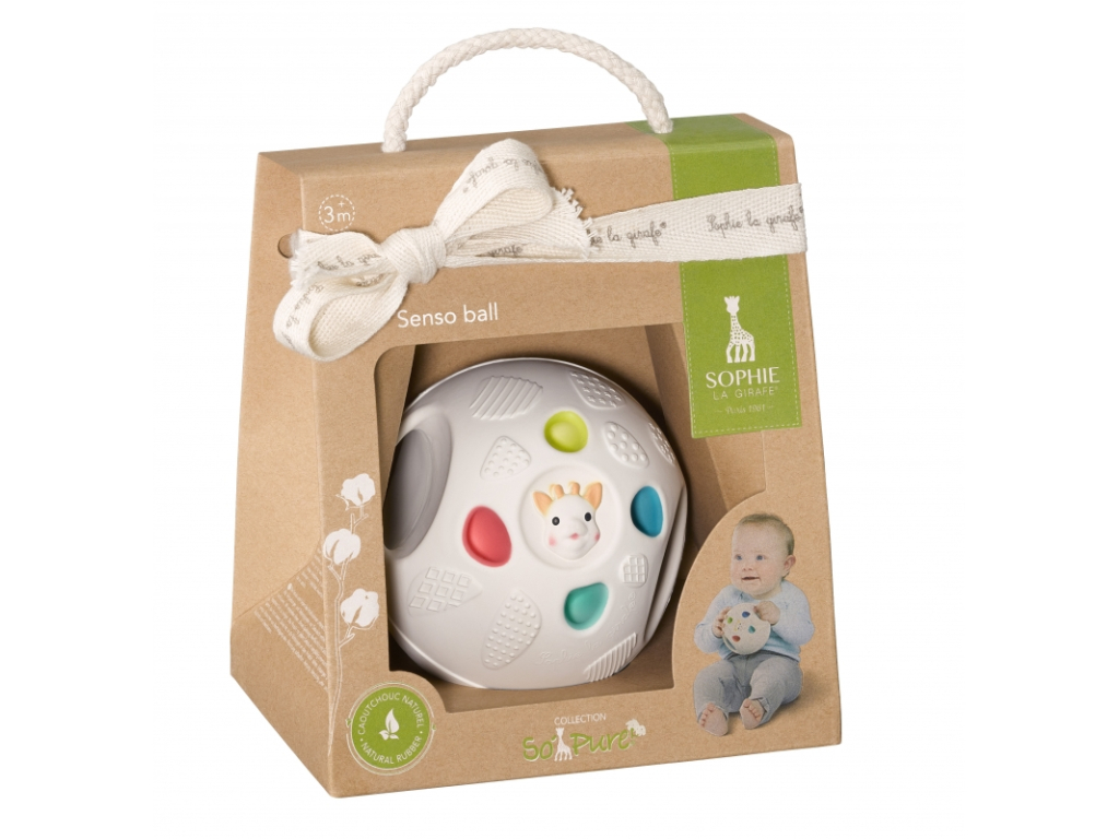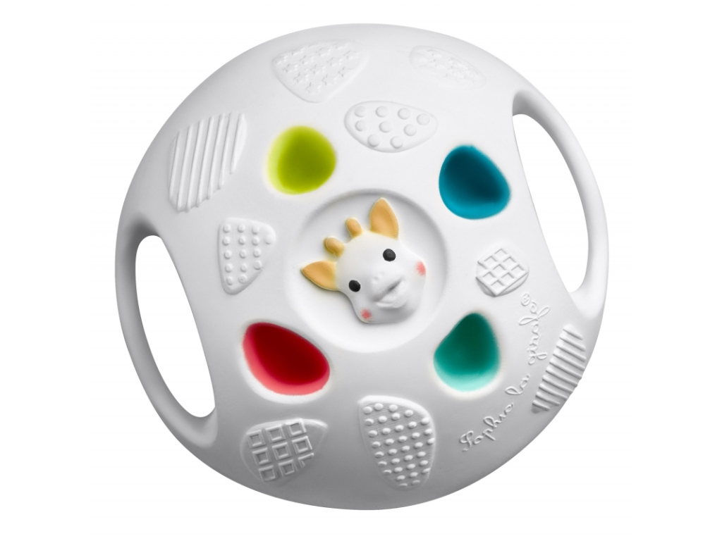 Je vyrobená zo 100% prírodnej gumy získanej z kaučukovníka Pará. Vďaka pestrým farbám a rôzne tvarovanému povrchu napomáha táto hračka rozvíjať zrak a hmat vášho dieťatka. Dieťa bude preskúmavať povrch lopty, strkať prsty do 8 rôznofarebných otvorov a tým rozvíjať zvedavosť a jemnú motoriku. Lopta je ľahká, ergonomická a vďaka madlám na oboch stranách i ľahko uchopiteľná malými detskými ručičkami.