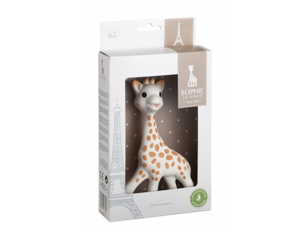 Vtedy boli deťom k dispozícii hračky iba vo forme zvieratiek z farmy alebo obľúbených domácich miláčikov … Preto jedného dňa vo Francúzsku pán RAMPEAU, prišiel s nápadom navrhnúť žirafu. Takáto figúrka exotického voľne žijúceho živočícha by bola prvá na trhu, a jej veľkosť a tvar by bol ideálny aj pre malé detské ruky. Žirafa Sophie, ktorá vtedy vyzerala úplne rovnako ako dnes, sa začala vyrábať vo štvrtok 25. mája, a od toho dňa dostala aj svoje meno. Bol to okamžitý úspech. Mladé matky hneď videli, že žirafu Sophiu musia pre svoje deti mať … A keď sa u detí objavujú prvé príznaky rastu zúbkov, žirafa Sophie im pomáha prestať plakať!