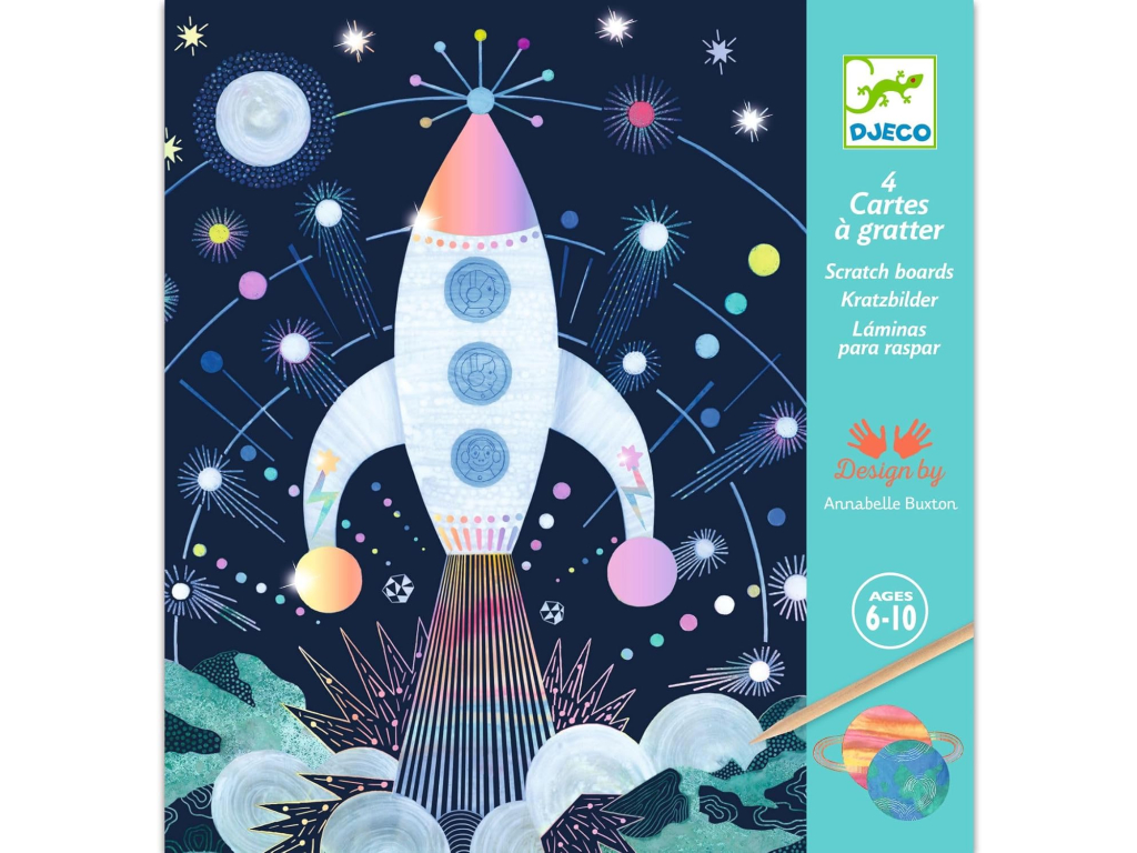 Objav vesmír plný farieb so sadou vyškrabovacích obrázkov! Pomocou dreveného stylusu odhaľuj skryté ilustrácie rakiet, planét a hviezd. Kreatívna zábava, ktorá rozvíja jemnú motoriku a prináša kúzelný efekt pri každom ťahu.