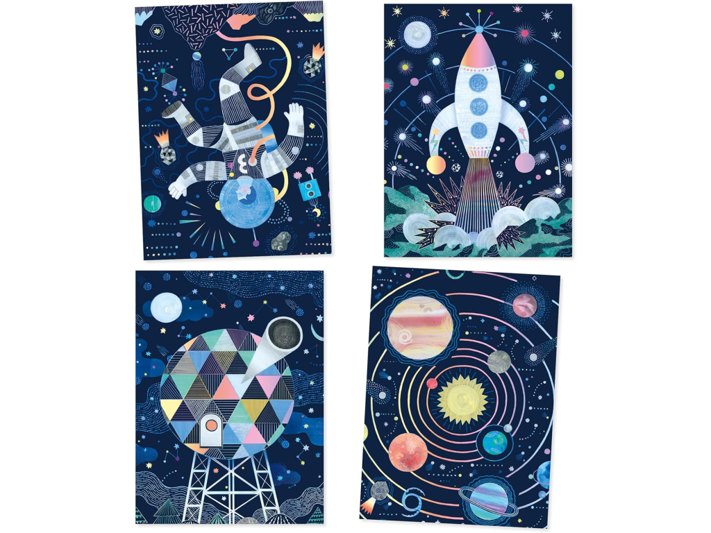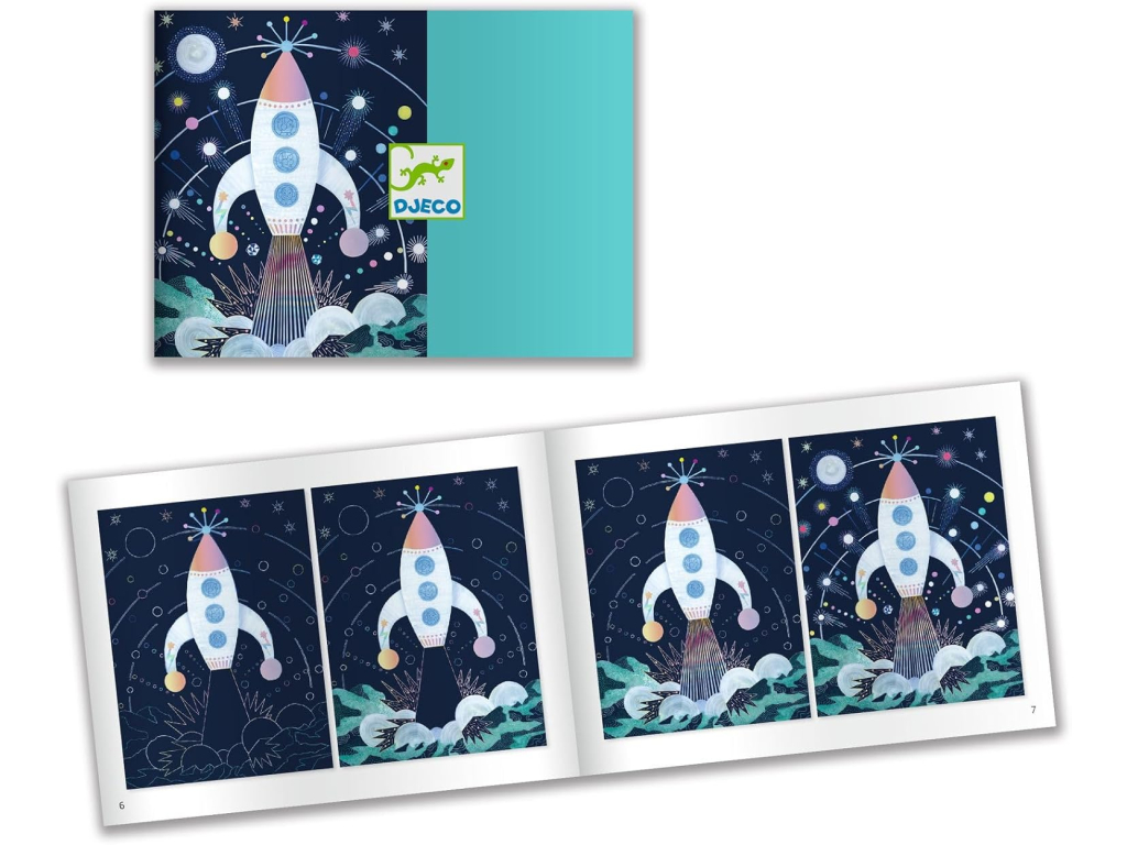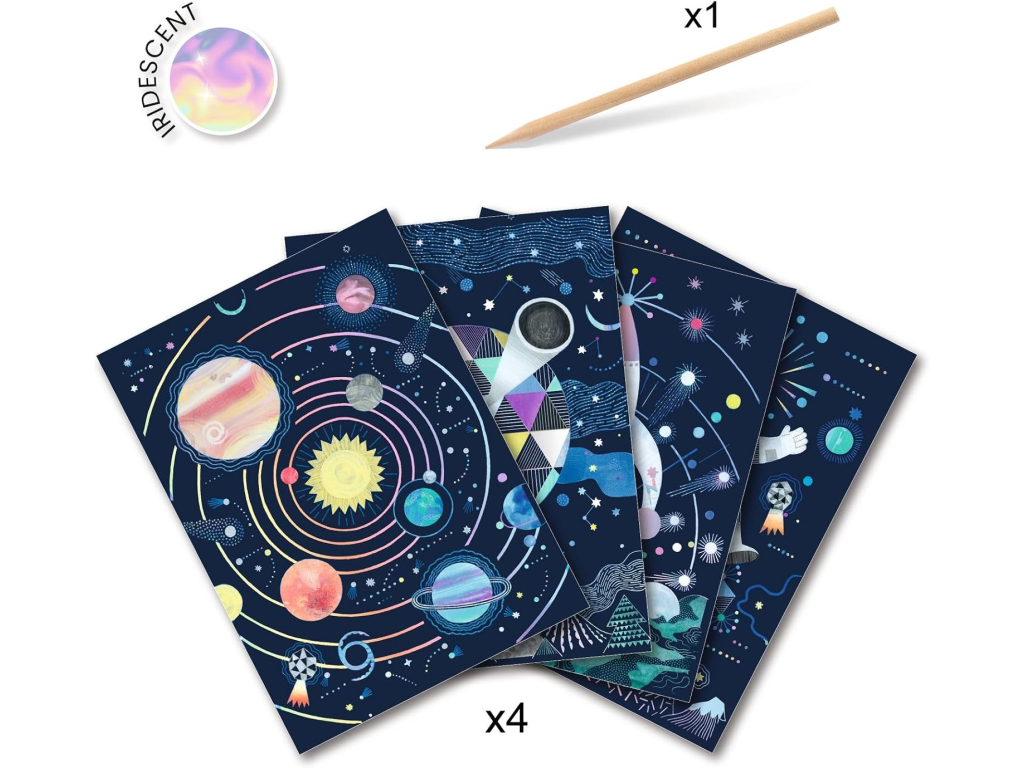 Vesmír ukrýva mnoho tajomstiev. Vezmi do ruky drevenú škrabku a vyprav sa za nimi umeleckou cestou. Počas trpezlivého vyškrabávania ťa bude sprevádzať obrázkový návod. Vďaka metalickému vzhľadu tvoje diela zažiaria.