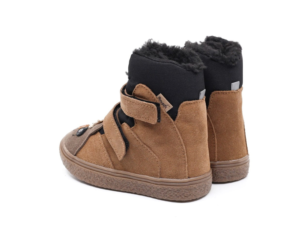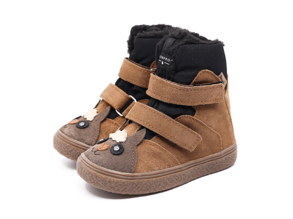 Krásne a kvalitné detské zimné topánky s TePor membránou, aby boli nôžky vášho dieťatka v teplúčku aj v tých najväčších mrazoch. Chodidlo je chránené pred vlhkosťou vďaka funkčnej membráne a zároveň dostatočne vetrané. Tieto zimné topánočky majú hravý dizajn vďaka zvieratkovej koženej aplikácii v prednej časti topánočky. Jazyk topánočky je všitý, a preto sú topánky ideálne aj do snehu, ktorý sa do topánočky tak ľahko nedostane. Aplikácia alpaky je hnedá. Nezameniteľné.