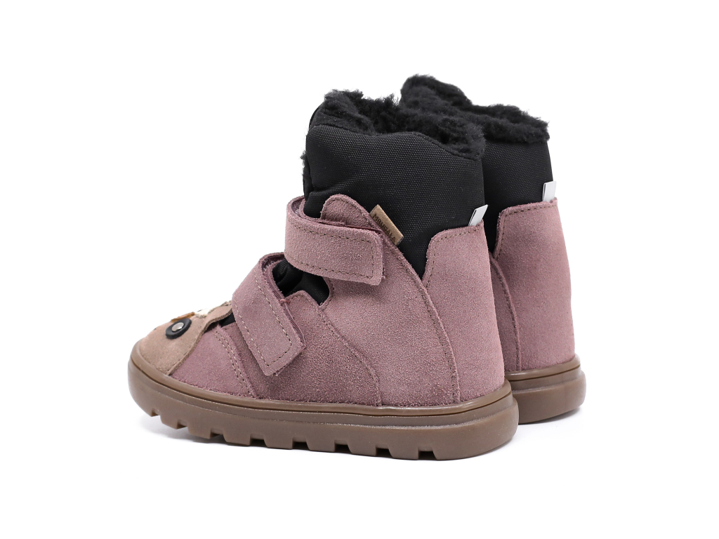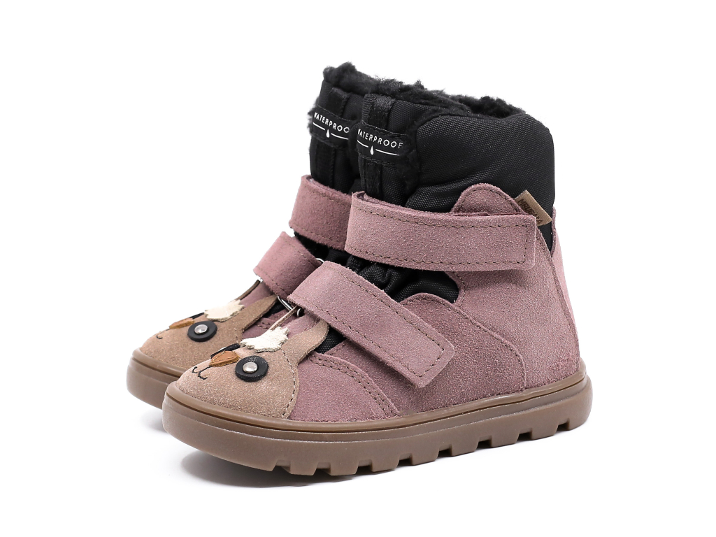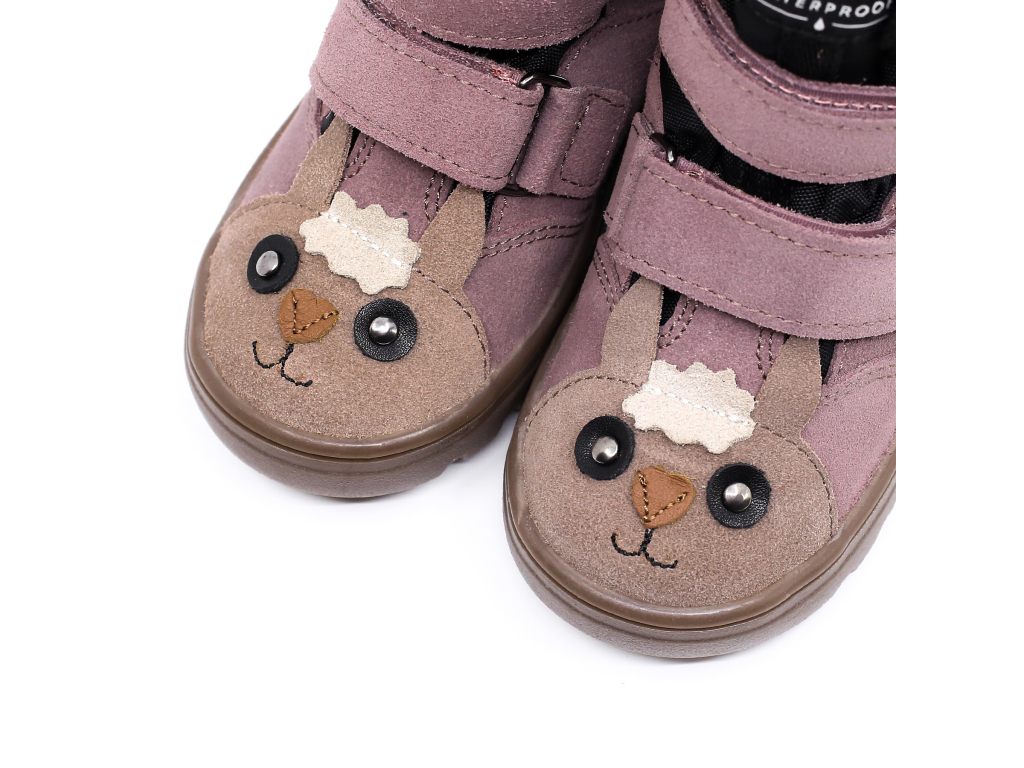 Krásne a kvalitné detské zimné topánky s TePor membránou, aby boli nôžky vášho dieťatka v teplúčku aj v tých najväčších mrazoch. Chodidlo Vášho dieťatka je chránené pred vlhkosťou vďaka funkčnej membráne a zároveň dostatočne vetrané. V krásnej jemnej fialkovo-ružovej farbe s typickou rozkošnou zvieratkovou aplikáciou na špičke topánky. Béžová Alpaka skvele doplní hravý a veselý štýl tejto obľúbenej zimnej obuvi.