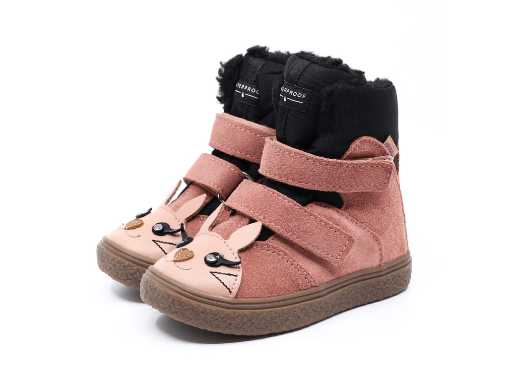 Krásne a kvalitné detské zimné topánky s TePor membránou, aby boli nôžky vášho dieťatka v teplúčku aj v tých najväčších mrazoch. V príjemnej staroružovej farbe s typickou rozkošnou aplikáciou zajačika na špičke.