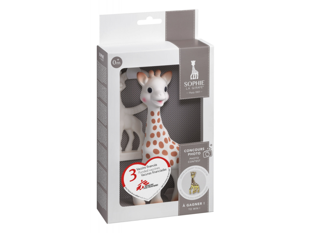 Darčeková sada obsahujúca žirafu Sophie a hryzátko vo farbe Ivory. Vhodné pre deti od narodenia. Žirafka Sophie je jedinečná hračka žirafa Sophie v darčekovom balení.